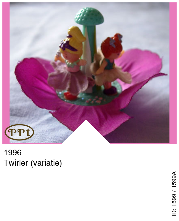 Twirler (variatie)Update: 16-11-2024 Dit is een draaimolentje in de vorm van een bloem en hier kunnen 3 poppetjes op staan. Met Polly en haar vriendin Iris.