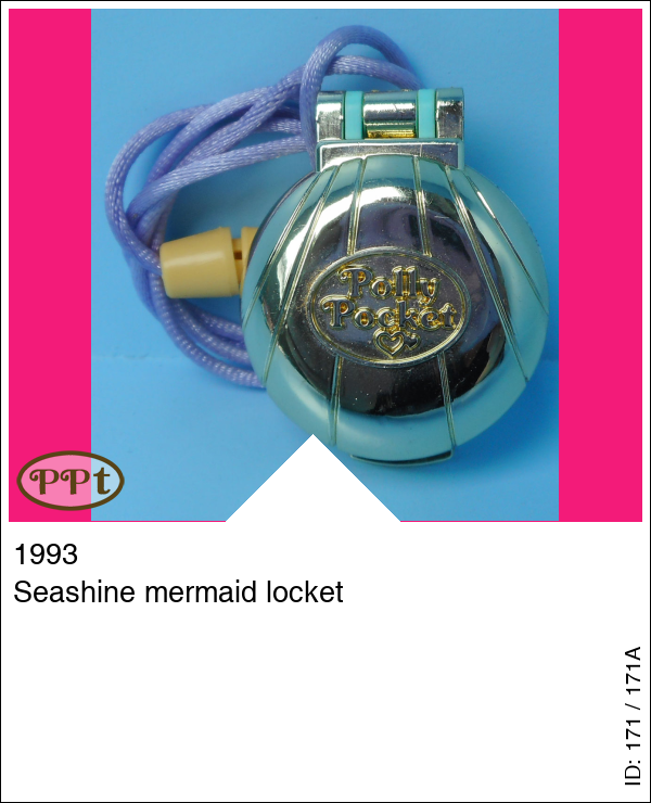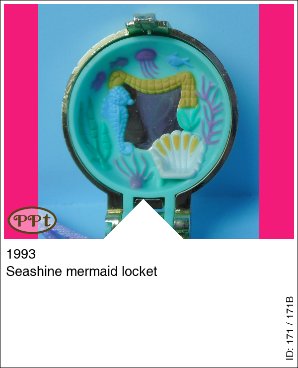 Een halsketting met hieraan een gouden doosje. Binnen in het doosje is bovenaan een lijstje met zeediertjes en een stoeltje, je kunt er ook een foto in doen. Beneden is de zeebodem met schelpjes, zeester en een krabje.