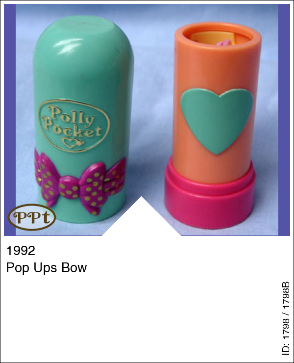 Dit ziet eruit als een lippenstift met een paarse strik voorop, maar het verrassende is als je het open maakt en je draait eraan dan komt er een hartje uit waar een popje voor kan staan.
