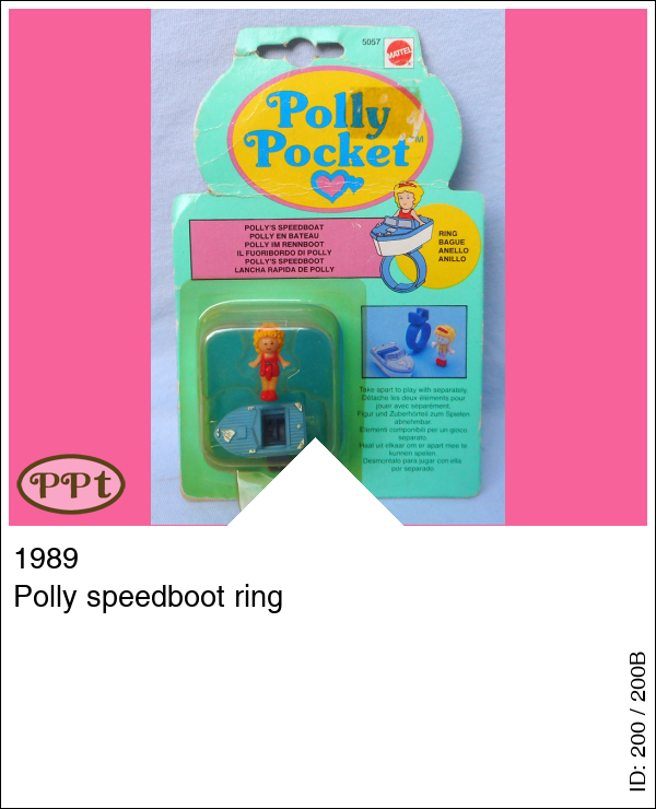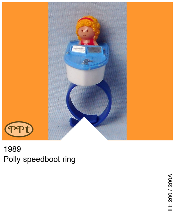 Polly speedboot ringUpdate: 22-02-2023 Een ring met een blauw/wit bootje en daarin een rood/gele polly, de ring kan uit elkaar dus dan heb je losse onderdeeltjes.
