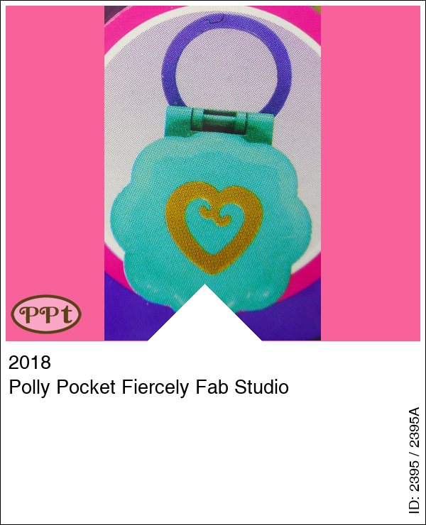 Sleutelhanger waaraan een doosje hangt in de vorm van een bloemetje, en voorop zie je een goudkleurig hartje. Binnenin zie je een naaistudio met tafel waar de naaimachine op staat en het kastje kan open. Bovenin een kast waarvan de deur ook open kan. Met Lila, passpiegel, stoeltje en een naaikoffertje ook dit kan open.