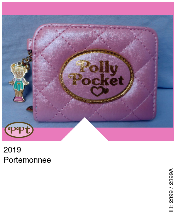 Super leuke roze portemonnee en aan de buitenkant gouden letters met Polly Pocket, binnen in de voering zie je ook allerlei afbeeldingen van popjes, stikjes en diamantjes enz. Aan de portemonnee hangt ook nog een ijzeren afbeelding van Polly! Zo leuk!