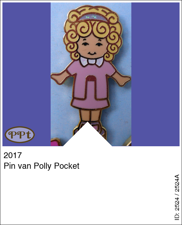 Leuke pin van Polly pocket popje in roze kleding.
