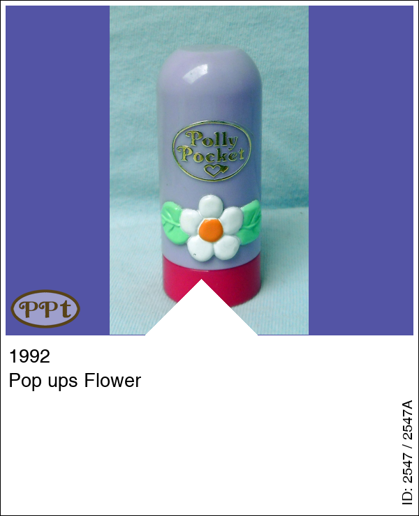 Lipstick roze met bloem en wanneer je deze open maakt is hij geel met een roze hartje, je draait de lipstick omhoog en dan komt er een roze bloem tevoorschijn waar een popje op kan staan.