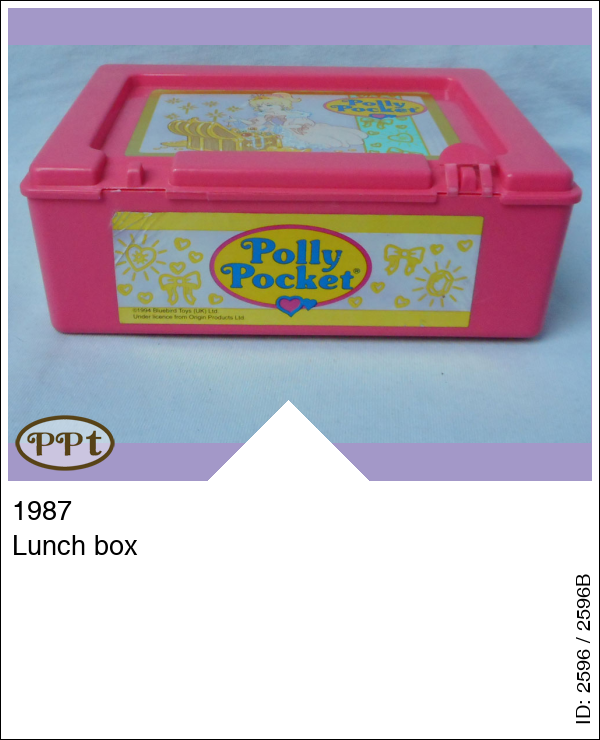 Lunch Box met leuke afbeelding voorop van Princess Polly met schatkist. Princess Polly staat ook met gezicht op de zijkant van het doosje. Het doosje is gemaakt door Bluebird in 1987! De sticker van Polly Pocket is er in 1994 opgeplakt en verkocht. Super leuk om dit te hebben in mijn verzameling.