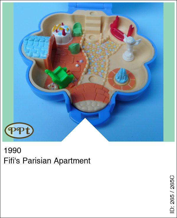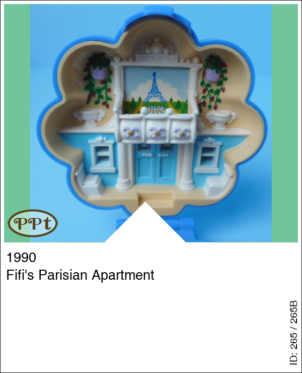 Dit is een blauw doosje in de vorm van een bloem, en binnen zie je aan de bovenkant de voordeur en een balkon van een huis en het uitzicht is de Yffeltoren. Beneden is voor de deur van dat huis met een hondehok en een gedekte tafel compleet met stokbrood, ook zie je een echt bewegende schommelstoel en een beeld en de ingang van de metro. Met Fifi, Henri haar zwarte en Henrietta haar witte poedel.