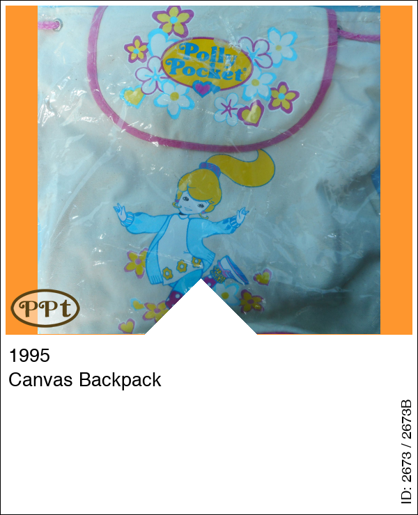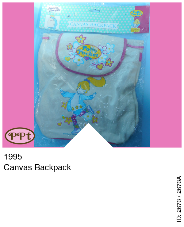 Canvas BackpackUpdate: 17-02-2023 Super leuke rugzak met afbeelding van Polly Pocket, je kunt hier je leuke doosjes van Polly in meenemen. Wat een geweldige rugzak met die roze hengsels aan achterkant.