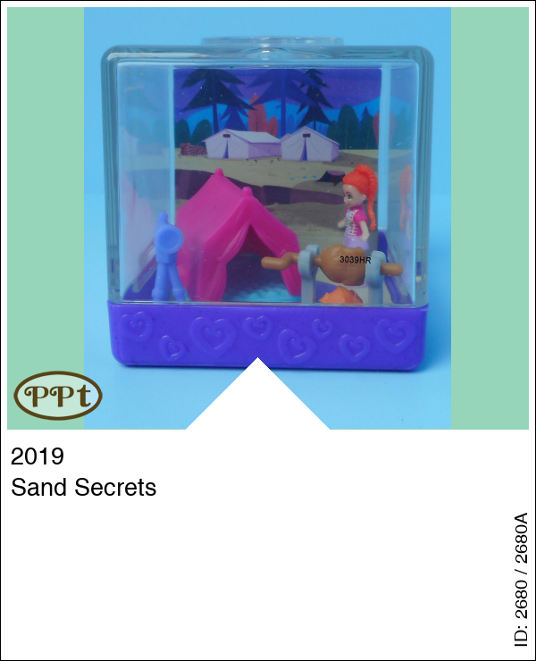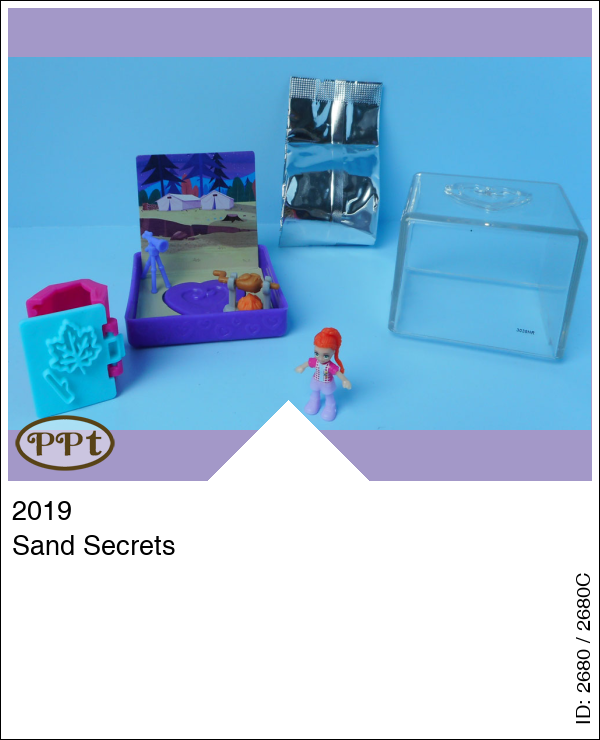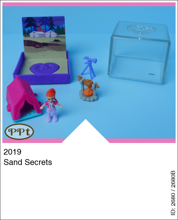 Er zijn 10 verschillende soorten! Dit is het wild kamperen, met Polly, kampvuurtje met daarboven een stuk vlees, sterrenkijker en een tentje wat open kan en je kan in het zand (wat erbij zit) een stempel maken met de onderkant van het tentje.