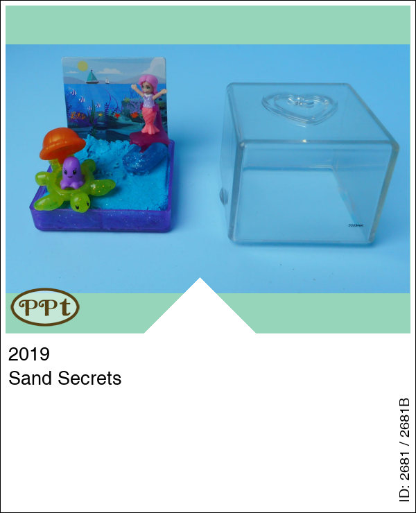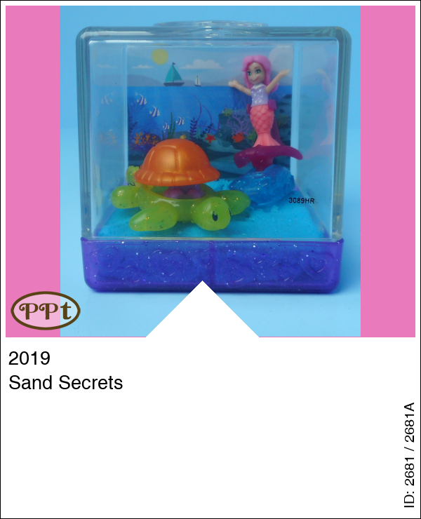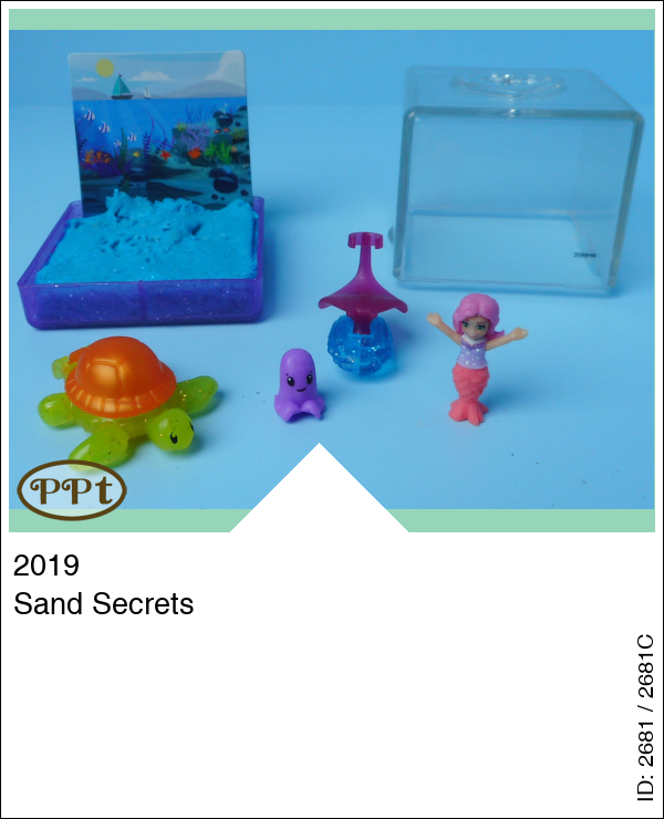 Er zijn 10 verschillende soorten! Dit is het onder de zee, met zeemeermin Polly, een golf met een rog en Polly kan je klemmen in zijn staart, paarse inktvis welke je onder het schild van de schildpad kan doen, Onder de schildpad zit een stempel daarmee kan je in het zand (wat erbij zit) een stempel maken.