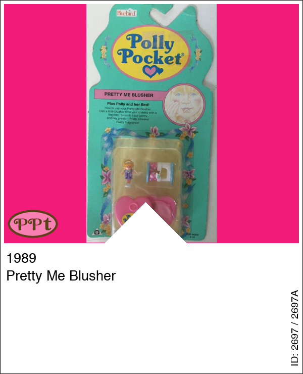 Pretty Me BlusherUpdate: 29-12-2021 Dit is een roze hartjes doosje met daarin blusher voor je wangen. Met het blauwe bedje met een rose dekentje en hierop ligt een beertje. Met Polly.