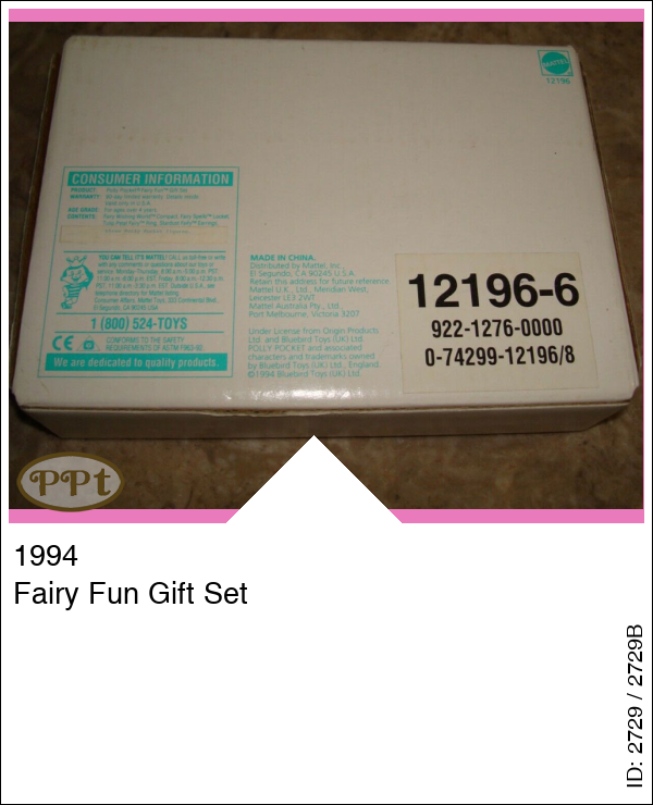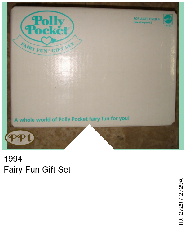 Fairy Fun Gift SetUpdate: 02-03-2023 Inhoud: Fairy Wishing World Compact, Fairy Spells Locket, Tulip Petal Fairy Ring, Stardust Fairy Earrings, 3 Polly Pocket poppetjes en 1 zwaantje.