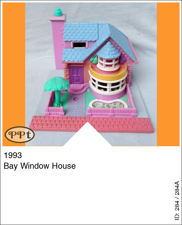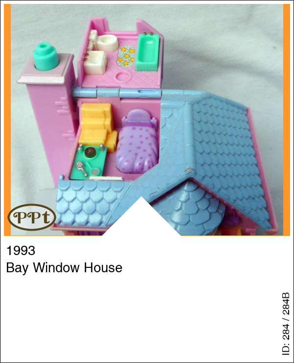 Dit is een huisje met licht. In de voortuin is een vijvertje, een boom en een erker. Het licht werkt als je op de schoorsteen drukt. Als je het zolderdakje opent zie je daar een badkamer en een trapje naar het bed en tafeltje met lampje (werkt) en borstel en spiegel. Als je het dak van het huisje omhoog doet en komt via de voordeur in een hal met twee deurtjes. Ga je door het witte deurtje kom je in de keuken en door het groene deurtje in de toilet met wastafel, ga de trap omhoog en je komt uit in de woonkamer met een stereotoren en boxen een tv en een bank met tafeltje waar een lamp op staat (werkt) ook heb je nog een ruimte waar een kaptafel met lamp (werkt) en stoel en een deurtje met spiegel en daarachter is de kledingkast. Met Polly, Jessica met ballonnen, Tamsin met cadeau, Emily met geel jurkje en feesthoedje.