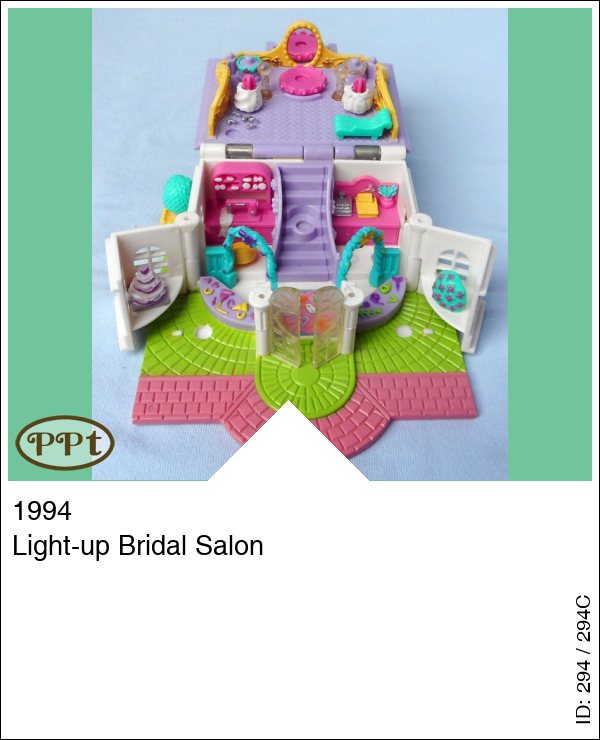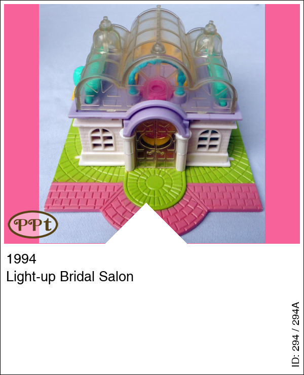 Dit huisje is met licht en heeft een doorzichtig dak wat ook omhoog kan. Aan de buitenkant staat een boom wat tevens het lichtknopje is. Als je het glazen dak omhoog doet zit daaronder een tuintje met draaiplateau waar de popjes hun jurkjes kunnen showen, ook staan er twee echt werkende lampjes. Wanneer je door de glazen deuren naar binnen gaat en de zijwandje weg klapt dan kom je in de bruidswinkel terecht je ziet daar een naai atelier met naaimachine en stoffen en aan de andere kant een toonbank met kassa. Als je de trap oploopt dan kom je in een showruimte waar ze de jurken kunnen passen en showen op het draaiplateu, er zijn lichtjes en een spiegel.