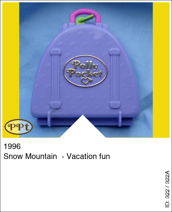 Dit is een paars koffertje met een winterse binnenkant met een skihutje met bed en balkon, een klein glijbaantje te bedienen vanaf de buitenkant en een schaatsbaantje. Het tafeltje is een los onderdeeltje en het sleetje kan ook los.