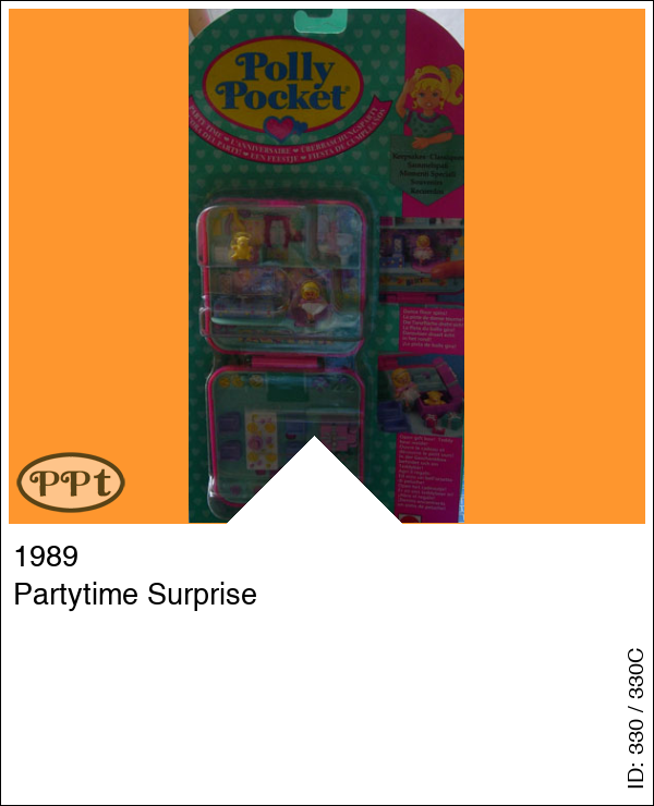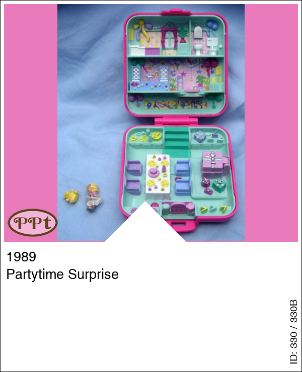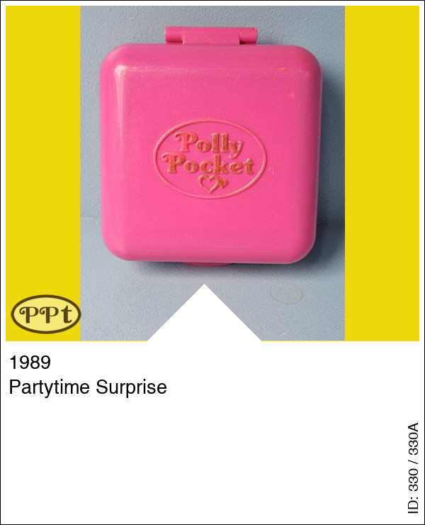 Een rose vierkant doosje met aan de binnenkant een verjaardagsparty compleet met taart en disco en cadeau wat open kan.