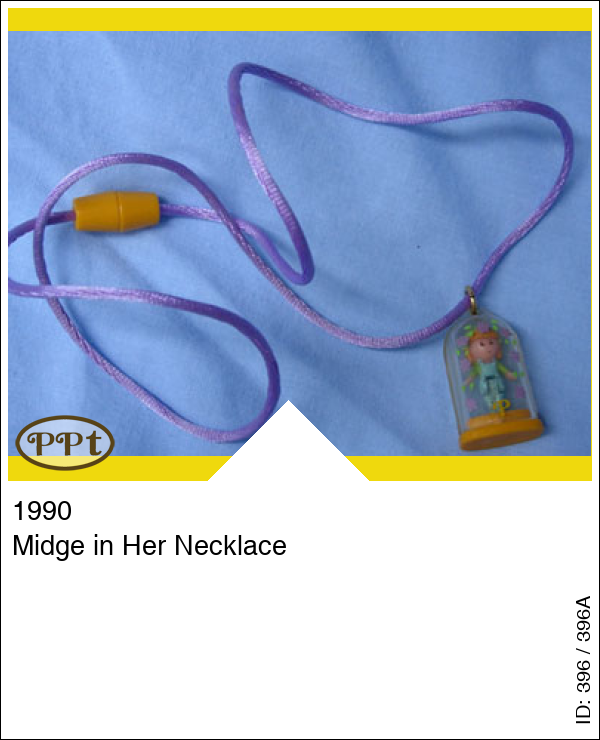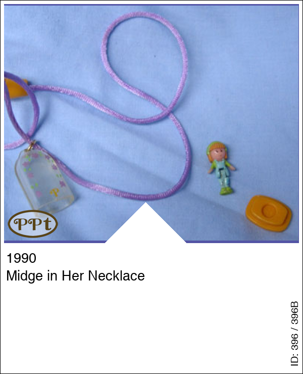 Dit is het orgineel met een paars koordje en donkergeel tussenstukje dit is ook de kleur van het onderkantje van stolpje. Bij de variatie is het koordje roze en het tussenstukje en onderkant stolpje lichtgeel. De popjes zijn hetzelfde.