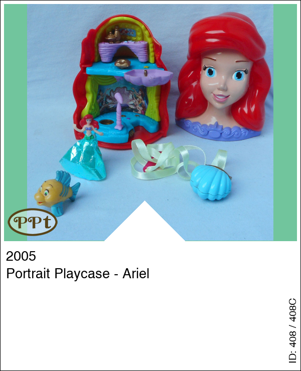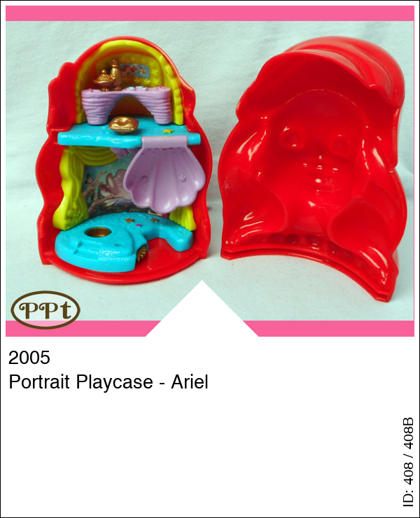 Je kunt het hoofdje openmaken en binnenin is een huisje met beneden een foto van een schelpenstoel en je kunt Ariël op een rondje zetten en d.m.v. een wieltje rond laten draaien, hier staat een microfoon om ze te laten zingen. Boven is een schilderijtje met botje, Ariëls schelp die je naar beneden kan klappen, een tafel met spulletjes erop en een gouden kussentje. Compleet met Ariël, rokje. Als extra zit er een halsketting bij met een doosje (schelp) en je kunt er binnenin een foto doen.
