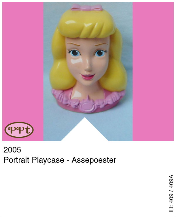 Je kunt het hoofdje open maken en binnen in is een huisje met beneden een foto van assepoesters koets. Je kunt assepoester op een rondje zetten en d.m.v. een wieltje rond laten draaien. Boven is een schilderijtje en een plateautje wat je uit kan klappen. Compleet met Assepoester, paspop om haar jurk aan te hangen, mandje met garen, een kist en een bedje. Als extra zit er een halsketting bij met een doosje(vorm kussen) met daarop een schoentje en binnen in kan je een foto doen.
