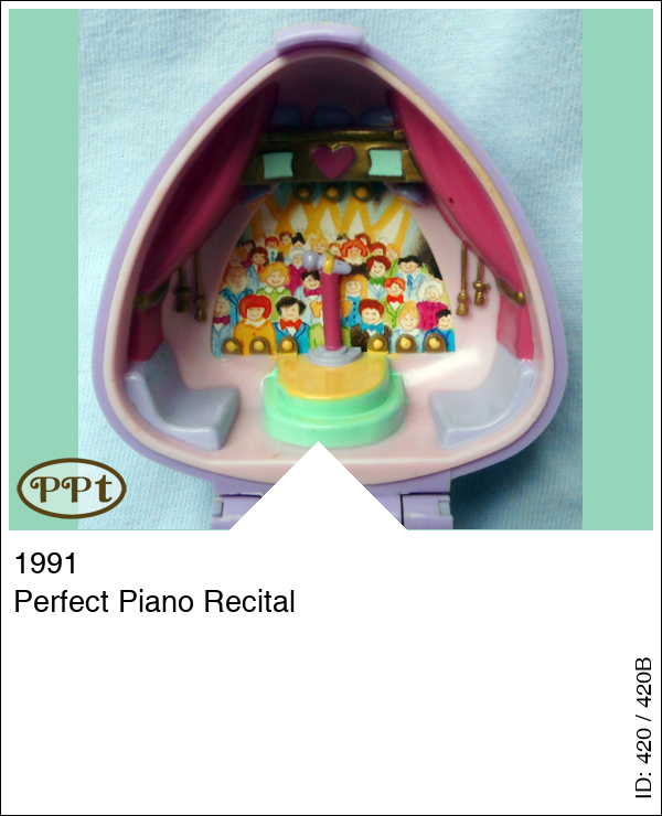Perfect Piano RecitalUpdate: 21-02-2023 Dit is een hoog driehoekig doosje met binnenin een pianoconcert. De piano kun je ook gebruiken als ring en er is ook een viool en bloemen. Met Polly, ring, piano, een papegaai op een standaard en het plantje.