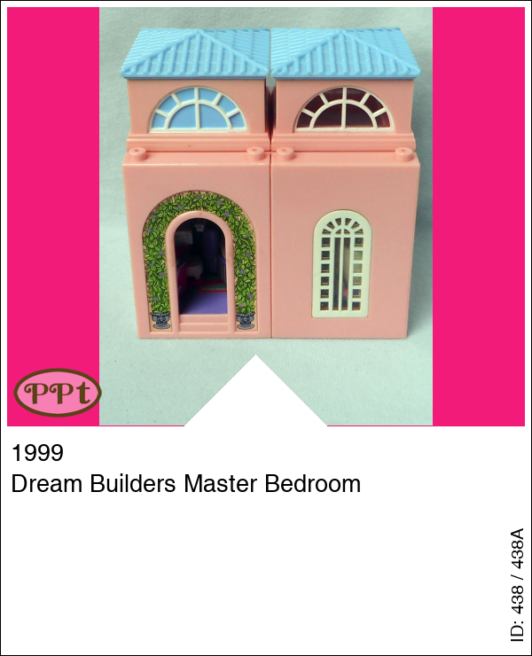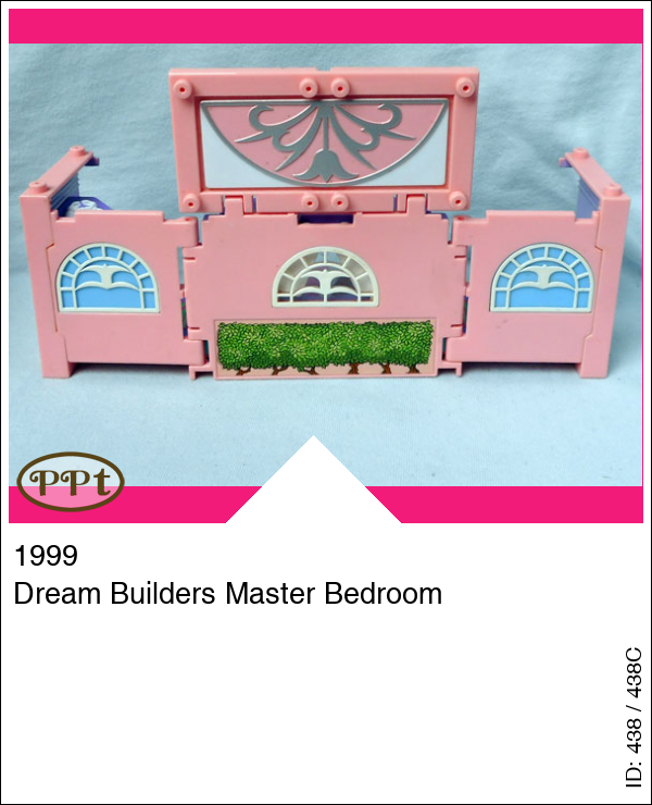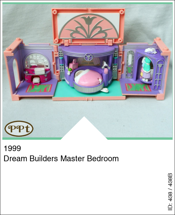 Dit is de hoofd slaapkamer. Aan de buitenkant groeit een plant in een boogje en als je onderdoor loopt zie je binnen een kaptafel met krukje wat je er onder uit kan schuiven, borsel en make-up doos. Er staat een groot rond bed waarvan de deken omhoog kan, het bed kan ronddraaien en dan zakt de tv naar beneden en de gordijnen gaan dicht, en het lampje gaat omhoog en daar komt een theepotje tevoorschijn. De kledingkast kan je draaien en dan zie je de douche. Met het poedeltje en Polly in pyama.