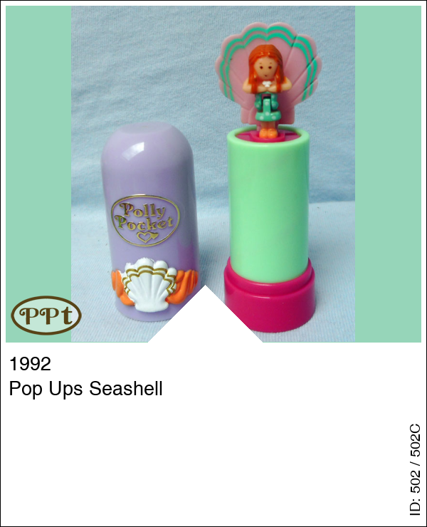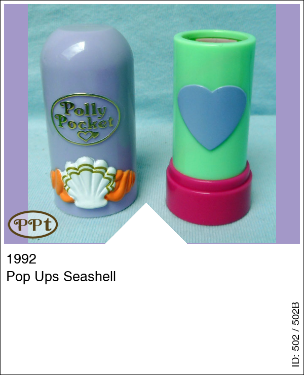 Pop Ups SeashellUpdate: 21-02-2023 Lila Lipstick en als je hem openmaakt is het groen met een lila hart en als je de lipstick omhoog draait dan komt er een popje omhoog en achter haar is een schelp.