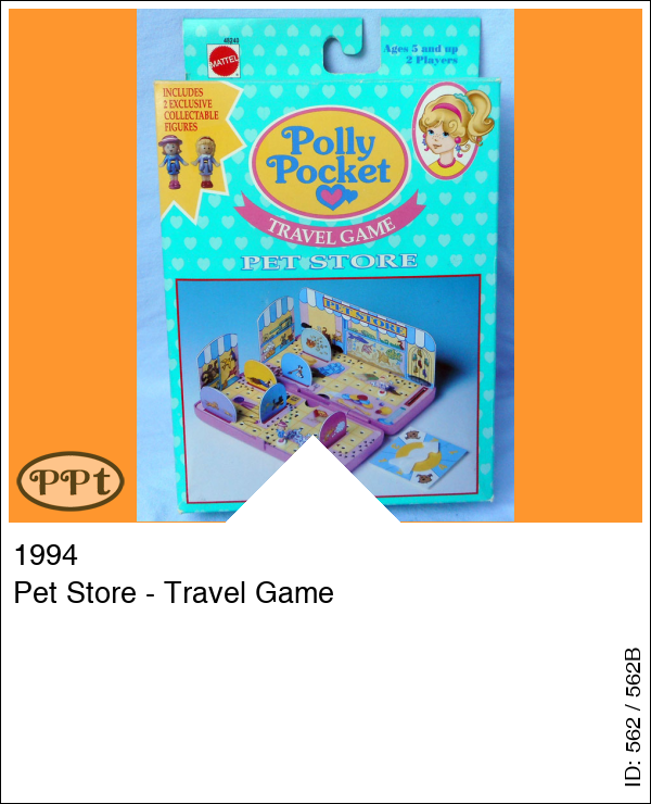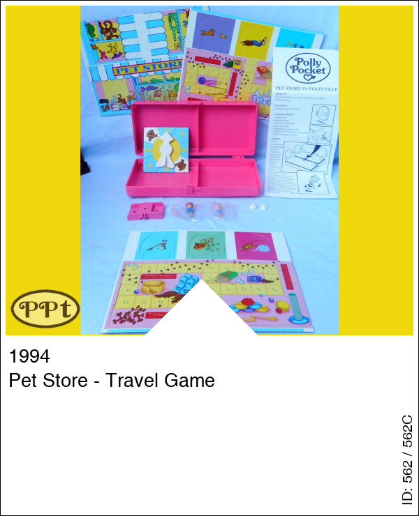 Dit is een reisspel in een roze doosje. Er zitten 2 popjes bij en een draaischijfje. Je legt het bordspel klaar en je zet de dierenkaartjes in de daarvoor bestemde gleufjes en d.m.v. het draaischijfje te draaien loop je de stapjes verder met het popje. Een soort ganzenbordspel. Met Polly en Midge.