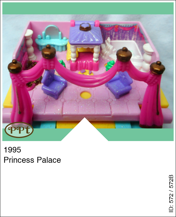 Dit is een klein geel boekje met op de rug een afbeelding van een kasteel. Binnenin gaat er een glitterwereld open met een hemelbed en een badkuip, toilettafel, stoeltjes en een gordijnenboog. Als je de trap naar beneden gaat dan kom je in de stallen terecht en is er een waterputje en draaistoeltjes en een schommelbank.