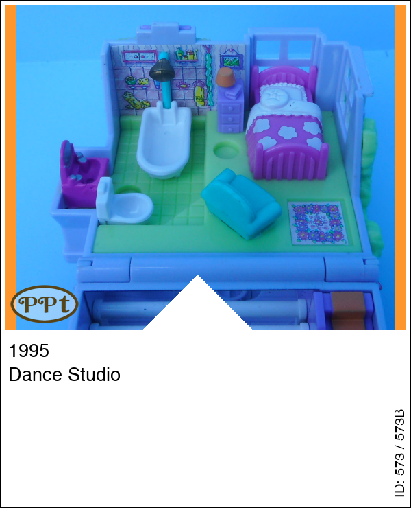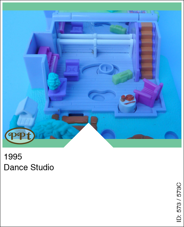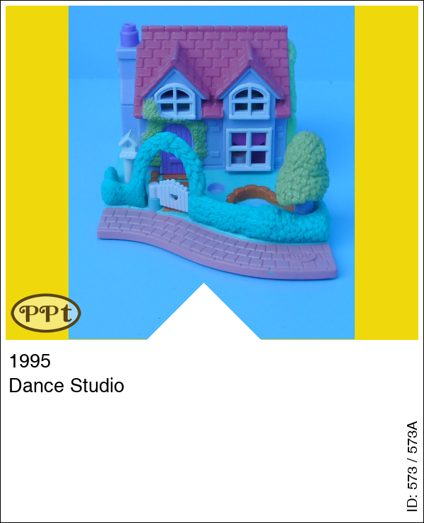 Een mooi blauw/lila huisje met een boompje en een vogelhuisje en een vijvertje. Binnenin zie je op de benedenverdieping een spiegelwand om te oefenen met dansen en wanneer je een popje voor de spiegel zet en aan het stoeltje beweegt dan gaat het popje ook bewegen en voor de muziek is er de piano. Op de bovenverdieping is een bed met nachtkastje en stoel en verder zie je een badkamer. Met Polly en Tiny Tina.