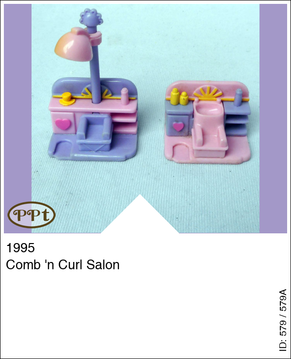 Dit is de kapper, je hebt een stoeltje waar je je haar kan laten wassen, en waar de shampoo op staat, en je hebt een stoeltje waar je onder de droogkap kan zitten, deze droogkap gaat echt omhoog en omlaag. Met Polly en Rebecca allebei met echt haar.