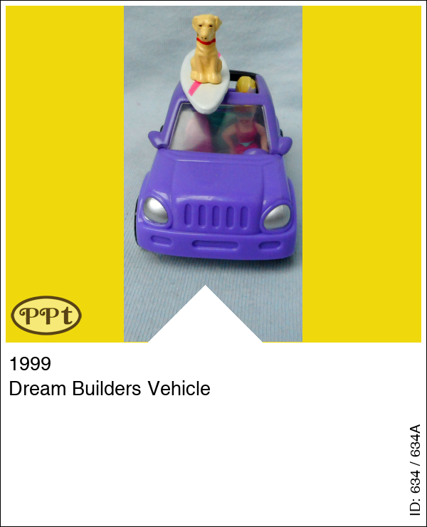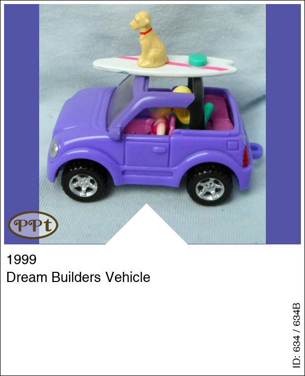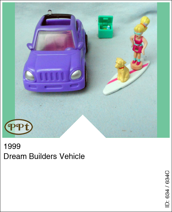Deze paarse auto is een leuk item van polly pocket en je kunt polly achter het stuur zetten. De surfplank kan je vastmaken op het dak en de hond kan dan weer op de surfplank zitten. Achterin kan je de koelbox zetten. Met Polly, hondje, surfplankje en het koelboxje.