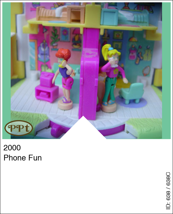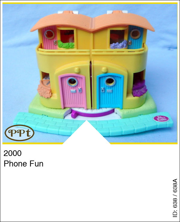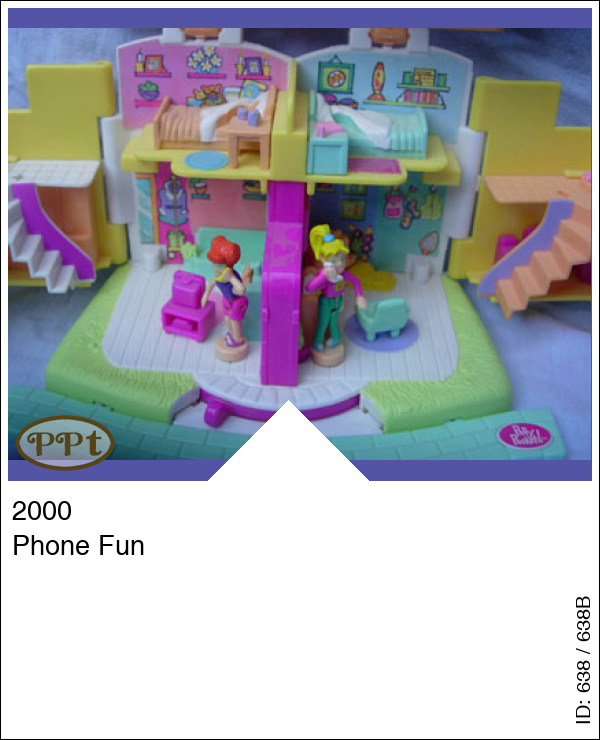 Kleine 2 onder 1 kap woning, en als je hem opent zie je de woonkamers en slaapkamers. Als je de popjes Polly en Lea op het rondje zet en je haalt het hendeltje over dan gaan hun armpjes omhoog en bellen ze elkaar, super leuk om te zien!!
