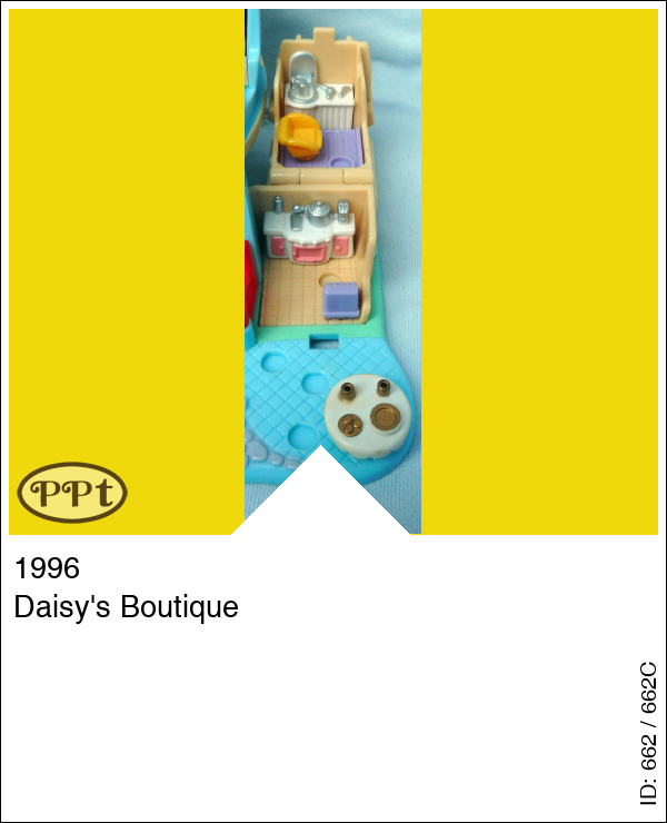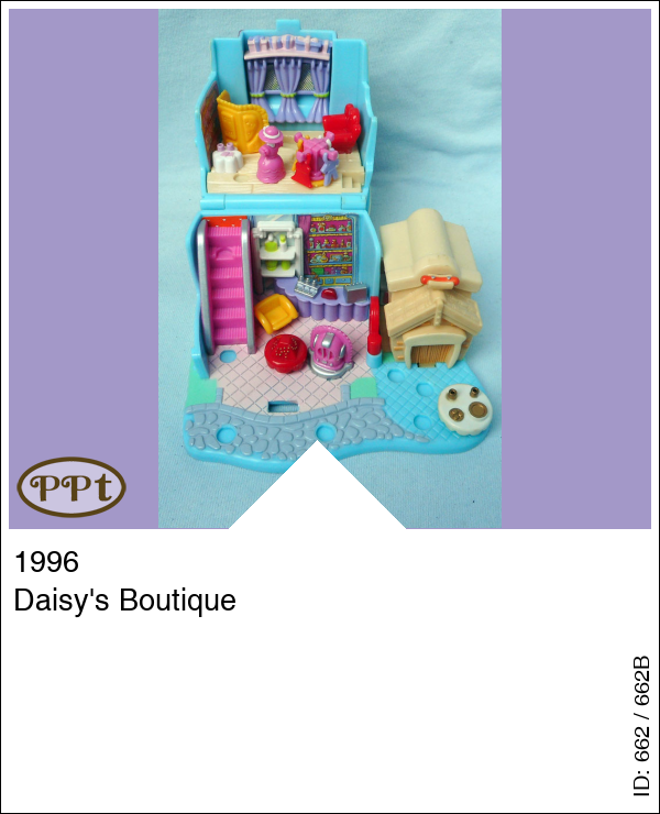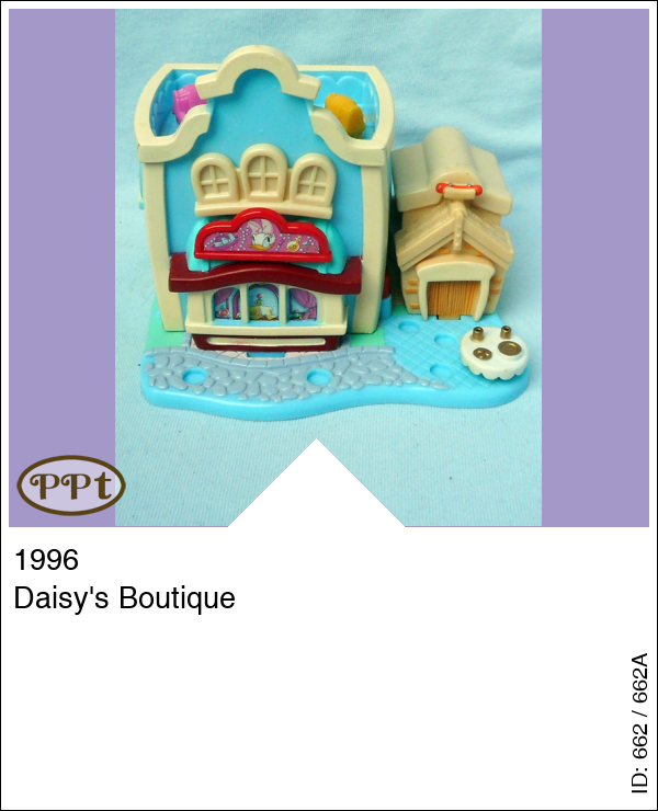 Dit is een kledingwinkeltje. Boven op het dak zijn 2 ligstoelen en een tafeltje. Naast het winkeltje staat een huisje met hotdog op het dakje en terrasje voor het huisje. Als je dit huisje optilt zie je beneden een winkeltje waar je kunt eten en boven is een schoonheidssalon met draaistoel. In het winkeltje verkoopt ze beneden parfums en juwelen en daar staat een jukebox. Ga de trap ophoog dan kom je bij de kleding, als je aan het jurkje met hoedje draait komt er een rondje tevoorschijn waar ze op kunnen staan om de kleding te showen, ook staat er een kledingrek met 4 jurkjes eraan. Met Katrien, Mickey en Minnie