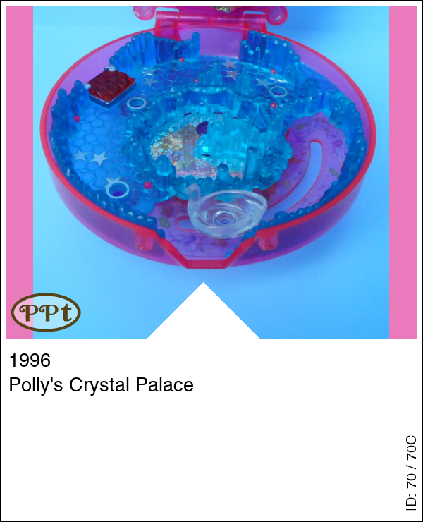 Een grote fles als diamant met Prinses Polly bovenin de dop! Aan de binnenkant een paradijselijk kasteeltje met glitters, goud.