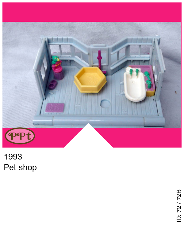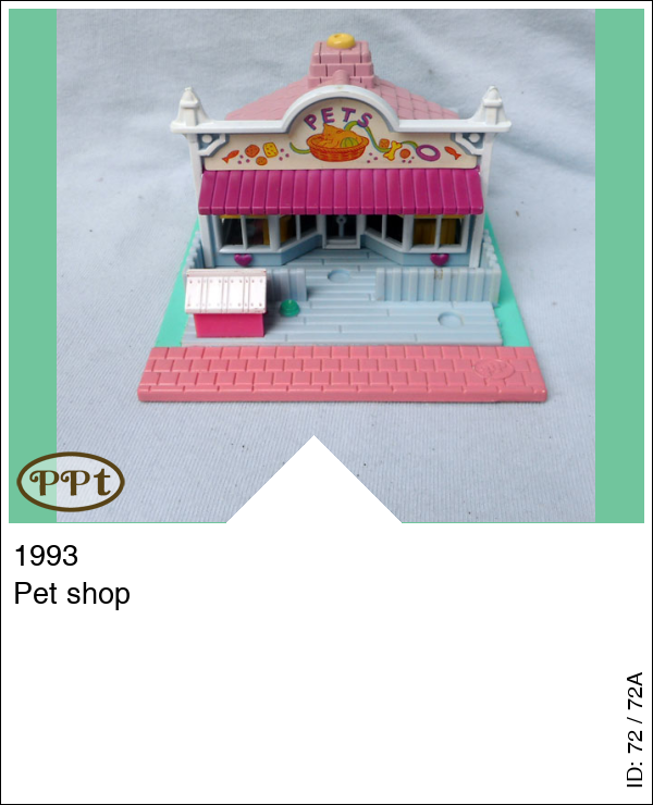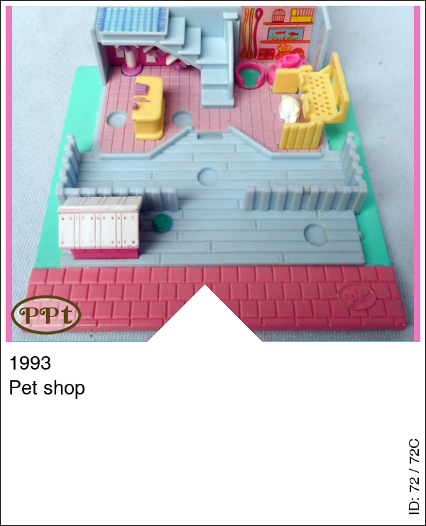 Een huisje waar binnen een dieren winkeltje is. Met een toonbank. Onder de trap zie je vogelkooitjes. Ook zie je een konijntje in een hokje. Bovenin staat een papegaai en een ligbadje.