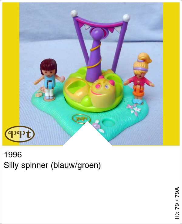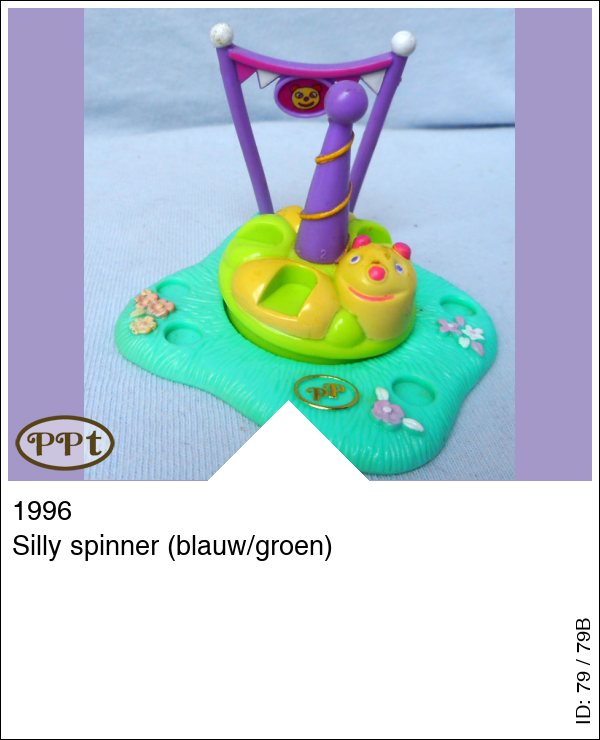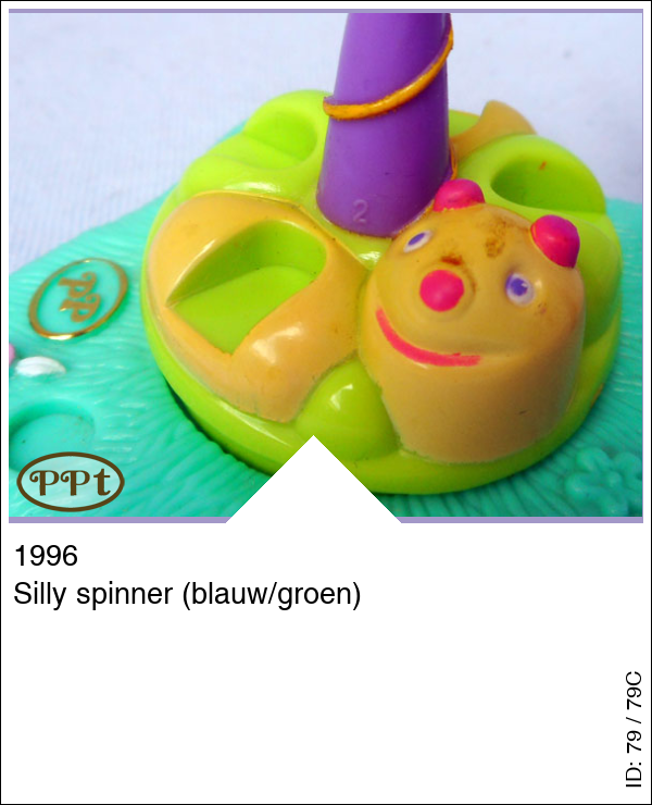 Silly spinner (blauw/groen)Update: 16-02-2023 De Kermis attractie genaamd de rups, en deze kan je rond laten draaien door het paarse stokje. Met Lauren en Polly.