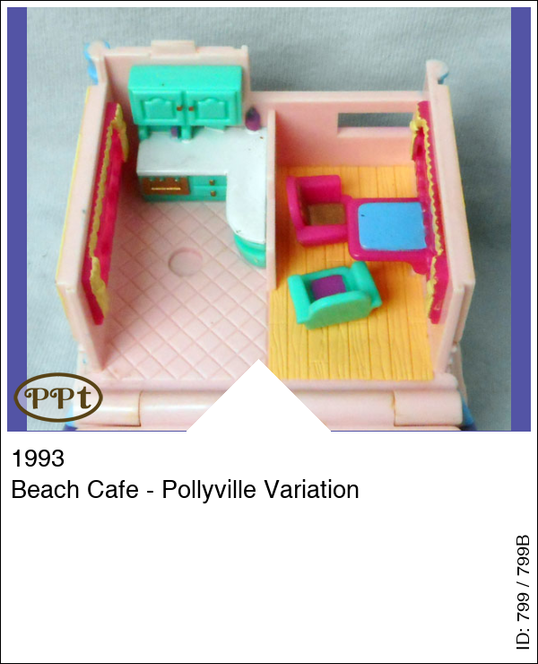 Dit is het cafe met een terrasje met 2 stoelen en de vriezer met ijsjes. Binnenin is de bar met de trap naar boven en daar heb je de keuken en nog een lekker zithoekje met echt draaiende stoelen. Met Polly.