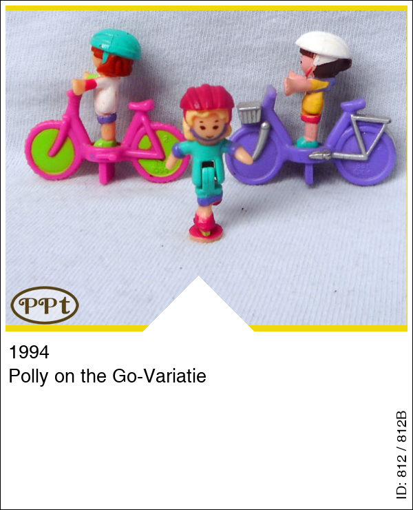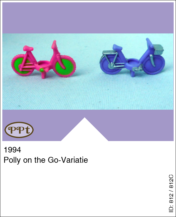 Polly on the Go-VariatieUpdate: 17-02-2023 Dit zijn 2 fietsjes. Een paarse fiets met zilver mandje voorop en een roze fiets met groene spaken. Met Polly op haar skates, Daisy en Michelle.