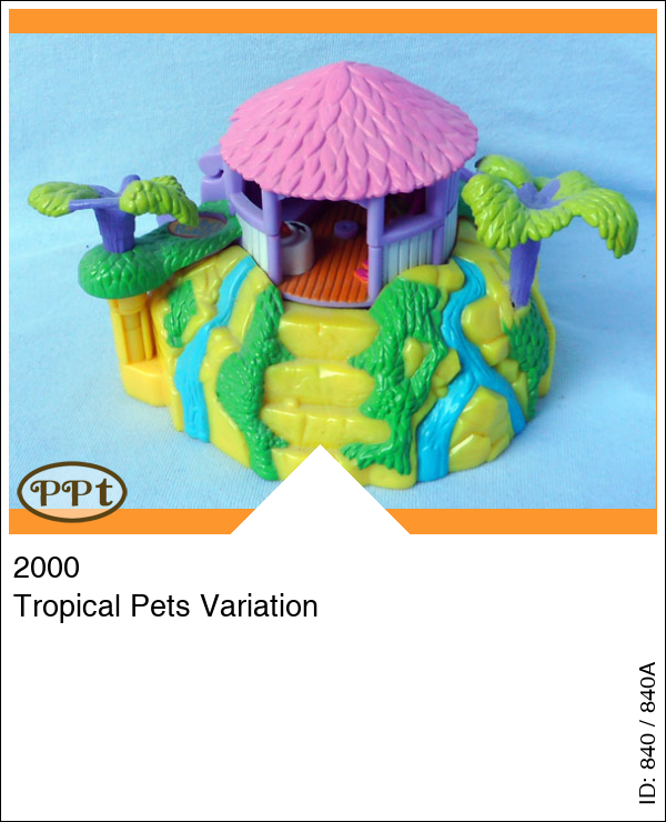 Dit is een huisje op een rots en onder het huisje zit de woonkamer met tv, slaapzak, stoel en mandje voor een diertje. Onder de rots is het strand waar de schildpad zijn eitjes heeft gelegd en aan de andere kant zie je een waterval en diertjes die onder water zwemmen. Met Polly, de grote schildpad, 3 kleine opeenvolgende schildpadjes, 2 koala's en de papegaai.