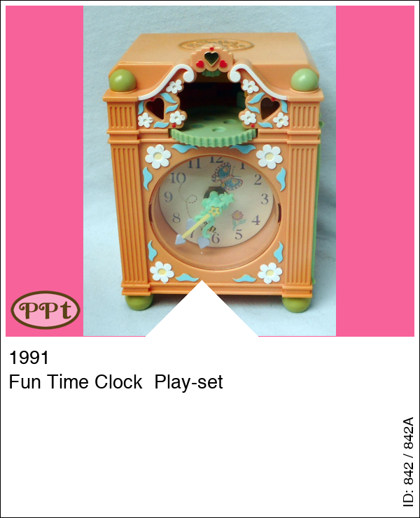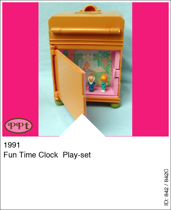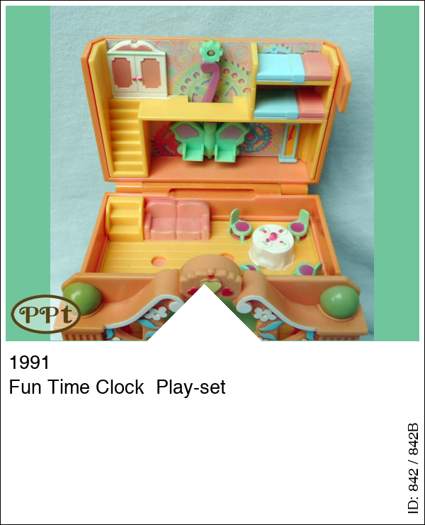 Dit is een klok die het echt doet en bovenop zie je een huiskamer als je het dekseltje opendoet. Achterin is een geheim vakje waar je spulletjes in kunt opbergen en daarachter zit de batterij van de klok. Met Polly, mrs. Chime, Midge, Vadertje tijd.
