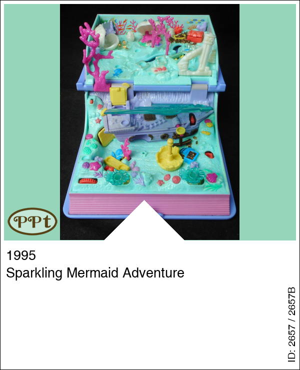 Dit is een boek, maar wat er binnen in zit is geweldig. Bovenaan zitten overal knopjes, en als je daaraan draait gaat de schatkist open en er komt een visje naar boven, de witte schelp kan open, ook een klein wit schelpje kan open, zeewier gaat omhoog, en een Griekse pilaar kun je omhoog doen. Beneden is een wrak van een schip ook daar zit een vis in die eruit kan komen als je op zeewier drukt, er zit een geel luikje op het schip waar een zeemeermin door kan zwemmen en achter een geel luikje zit een enge vis, een draaimolentje nog een schatkistje. Er zit ook licht in en heel veel glitters.