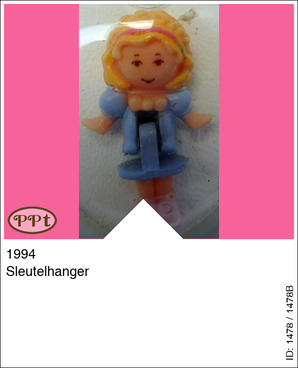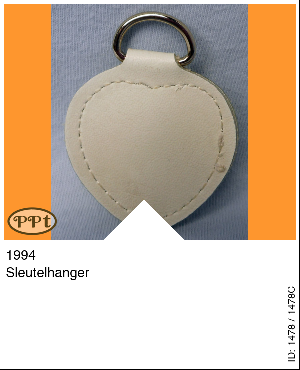 Dit is een sleutelhanger in de vorm van een hartje van wit leer en hierop zit een hard plastic doorzichtig kapje en onder dat kapje zit Polly, dus zo heb je ze altijd bij je met je sleutels. Met Polly