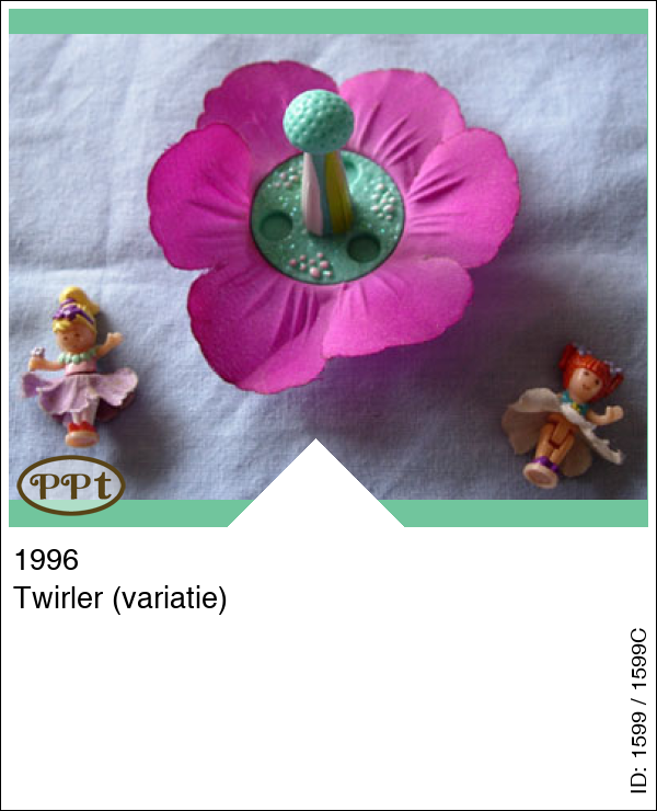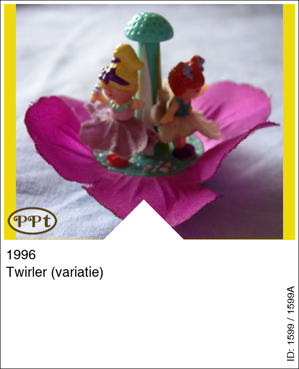 Twirler (variatie)Update: 16-11-2024 Dit is een draaimolentje in de vorm van een bloem en hier kunnen 3 poppetjes op staan. Met Polly en haar vriendin Iris.