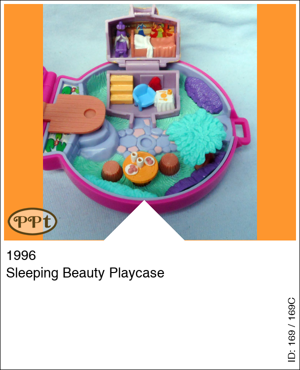 Onderin zie je het huisje waar Doornroosje heeft gewoond bij de feeen, als je het dakje optilt zie je het wiegje staan, dit kan je eruit halen.Er staat nog een bedje, tafel en stoeltje. Buiten zie je een boom en een picknicktafel. Met Doornroosje en Prins Charming.