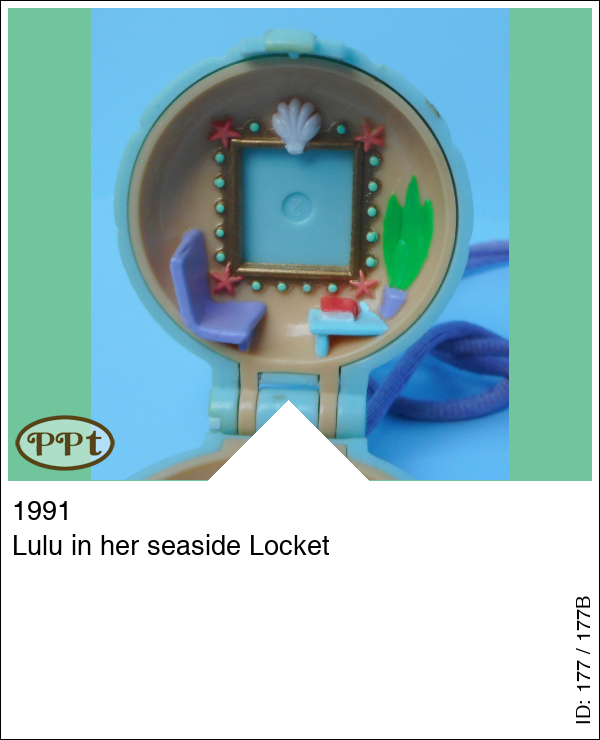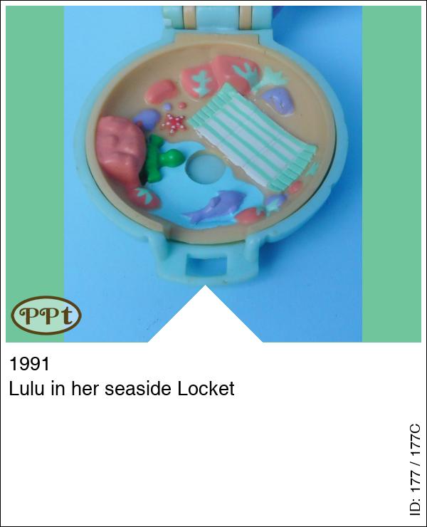 Lulu in her seaside LocketUpdate: 21-02-2023 Een groen doosje in de vorm van een schelp, met binnenin aan de ene kant waar je een foto kan stoppen en aan de andere kant het strand met handdoek. Compleet met Lulu
