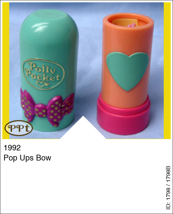 Dit ziet eruit als een lippenstift met een paarse strik voorop, maar het verrassende is als je het open maakt en je draait eraan dan komt er een hartje uit waar een popje voor kan staan.