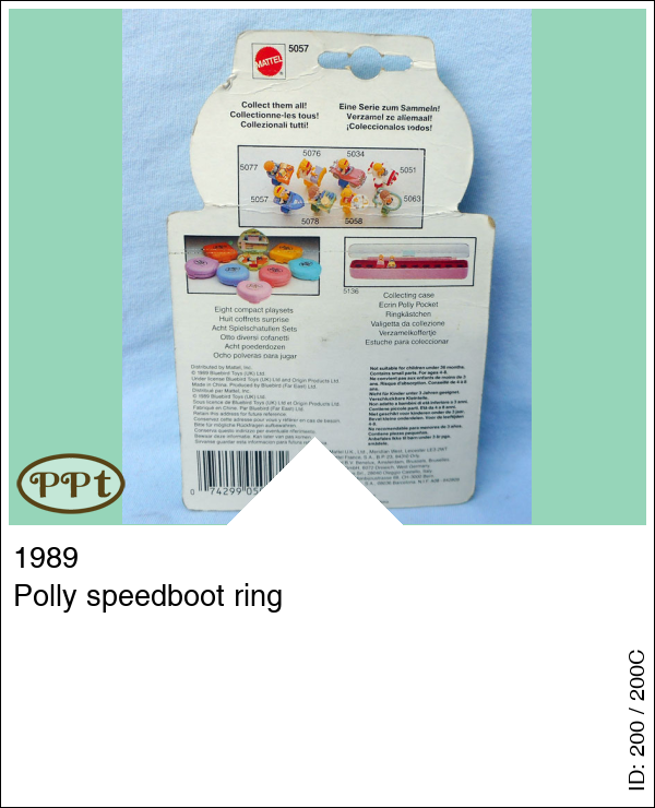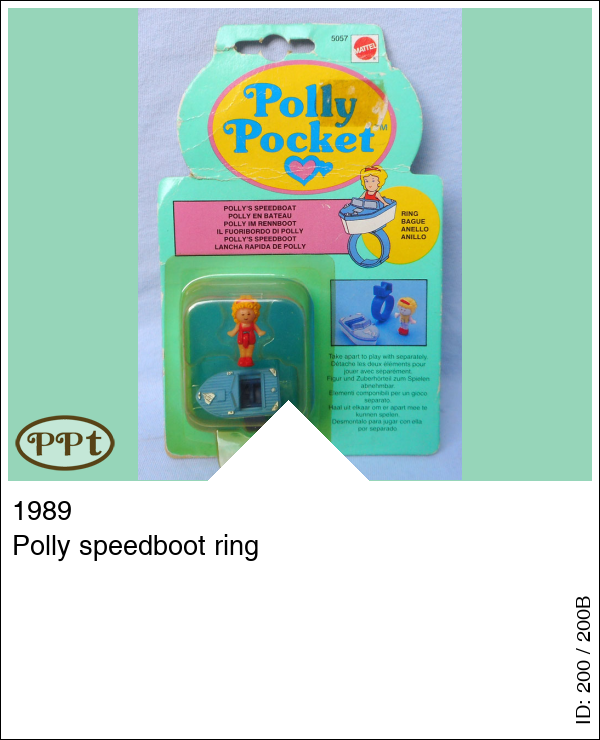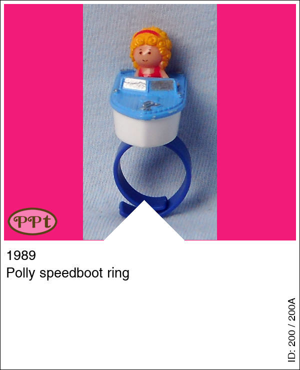 Polly speedboot ringUpdate: 22-02-2023 Een ring met een blauw/wit bootje en daarin een rood/gele polly, de ring kan uit elkaar dus dan heb je losse onderdeeltjes.