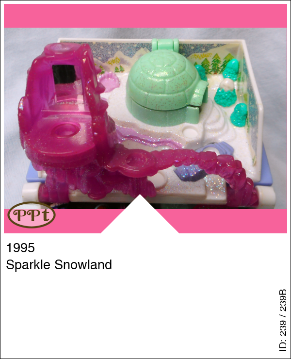 Dit is een boekje met op de rugzijde een plaatje van een iglo en deel II. Binnen is een sneeuw tafereeltje met bovenin een iglo waar het dakje van open kan en daar binnen is een tafeltje en wat stoeltjes en veel glitters. Beneden moet een grot voorstellen met een troontje en een uitklapbare ijsschots met daarboven een spiegeltje waar Polly voor kan gaan staan. Ook zie je een watervalletje. Met Prinses Polly, Prinses Alexia met oorwarmers, ijsbeer, slee, sleehondje.
