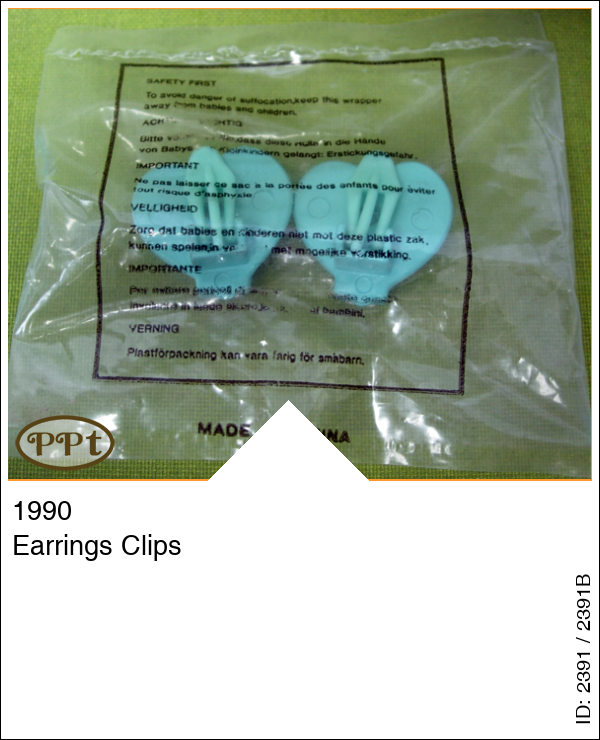 Waarschijnlijk horen ze bij de paarse Earring Case uit 1991 maar ze kunnen ook als vervangend of anders verkocht zijn want de oorbellen zijn uit 1990 en het doosje uit 1991. Maar dit kunnen ook oorbellen zijn waarvoor gespaard kon worden zie spaarkaart 1989.