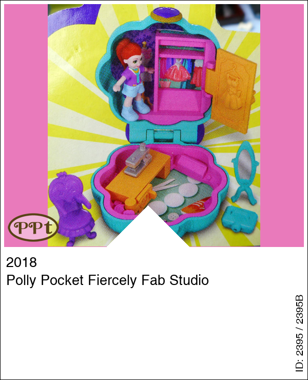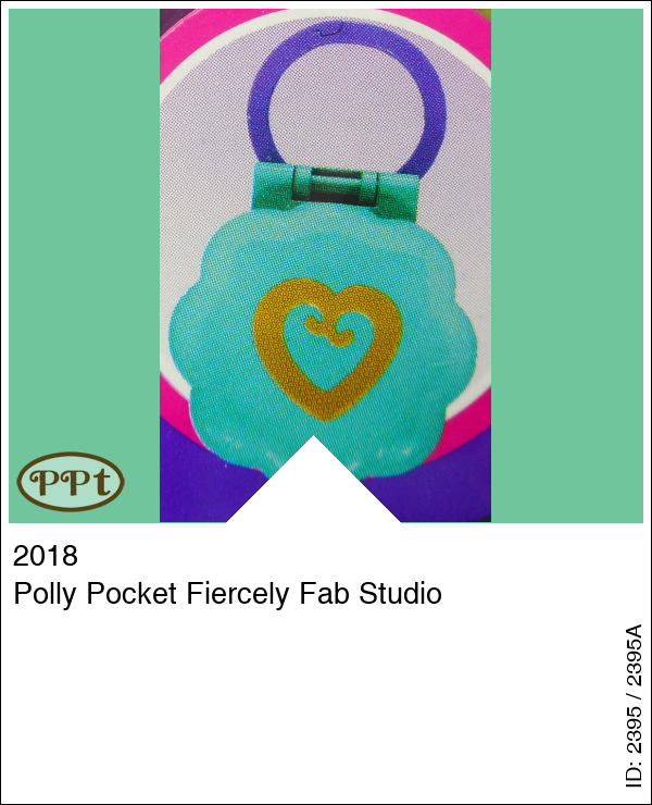 Sleutelhanger waaraan een doosje hangt in de vorm van een bloemetje, en voorop zie je een goudkleurig hartje. Binnenin zie je een naaistudio met tafel waar de naaimachine op staat en het kastje kan open. Bovenin een kast waarvan de deur ook open kan. Met Lila, passpiegel, stoeltje en een naaikoffertje ook dit kan open.