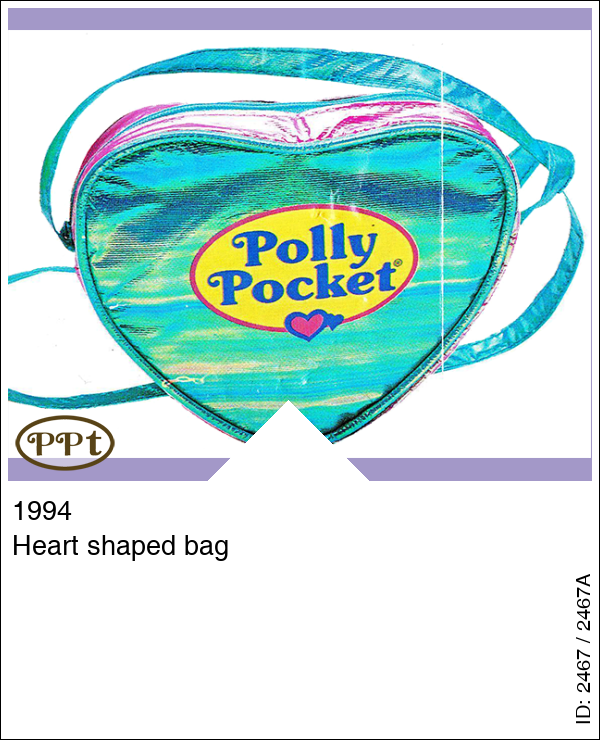 Heart shaped bag Tasje wat je alleen kan kopen met spaarkaart. Het tasje lijkt op een soort van parelmoer kleurtjes en op de voorkant het logo van Polly Pocket.